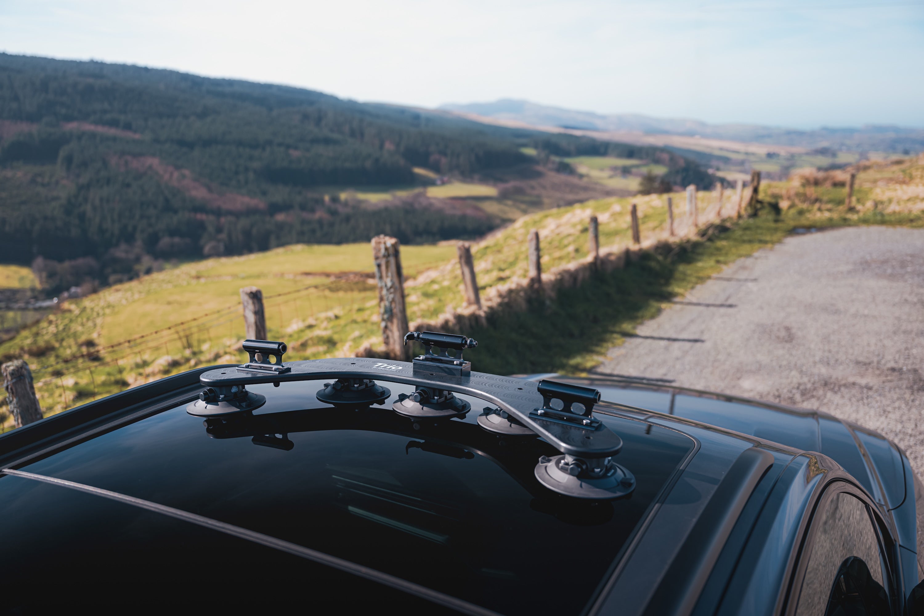 Our modular vacuum cups will mount to any smooth surface. Allowing you to mount Trio anywhere on your car, including panoramic glass.